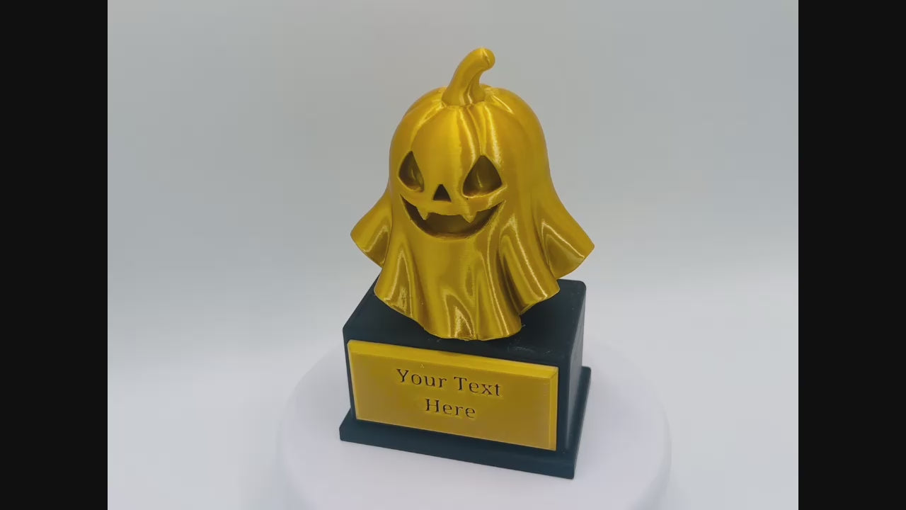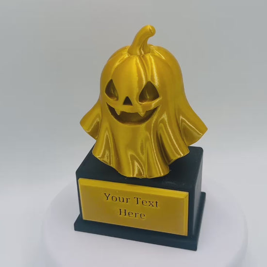 Crown your party champion with this golden pumpkin ghost trophy figurine, the ultimate prize for the best Halloween costume! Give your guests something to show off all year long! this trophy is the prize they’ll treasure, and laugh about, long after the party’s over!